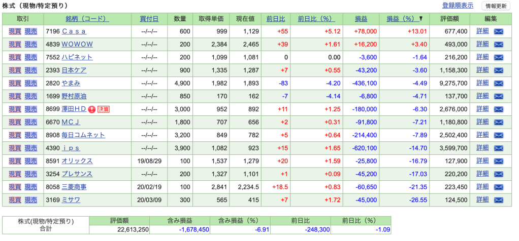 WOWOWが強かった理由がよく分かりませんが(巣篭もり関連?)、上がって良かったです。優待以上の利益が出ました。