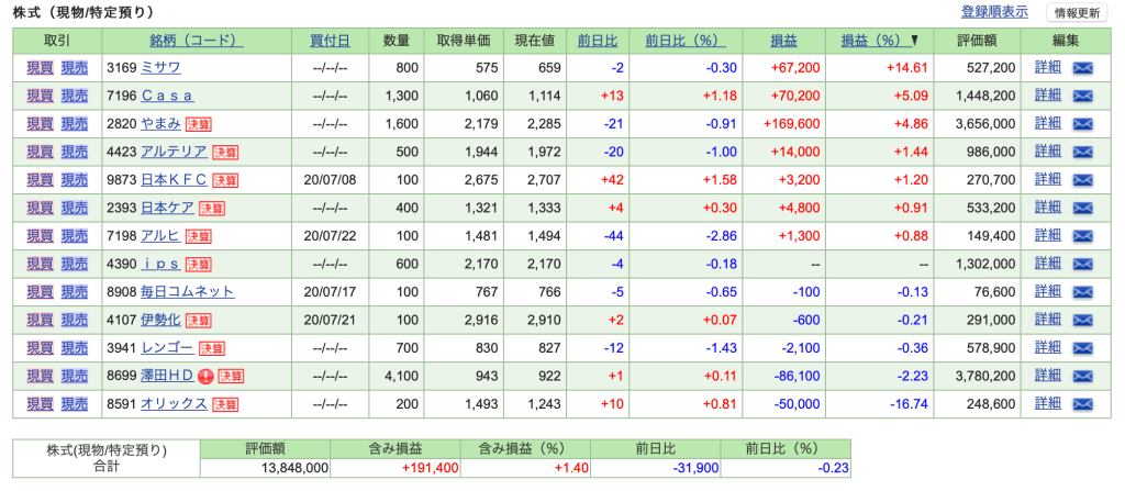 銘柄数が増えました。アルヒは再参戦です。伊勢化学工業はTOB狙いですが、どうでしょうかね。バリューなので長期放置の覚悟で保有し続けるつもりです、が、、、握力弱いので実際はすぐ売っちゃう気がします。