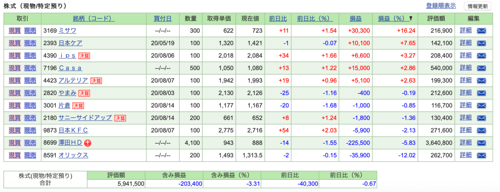 2020/08/16時点のポートフォリオです。夏休み期間中のため簡易的に。